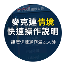盤中智慧選股/漏斗選股/型態選股/自設指標/國際指數/基本分析/個股、加權、期權走勢/技術分析/基礎創意指標/即時新聞/麥克連選股大師情境